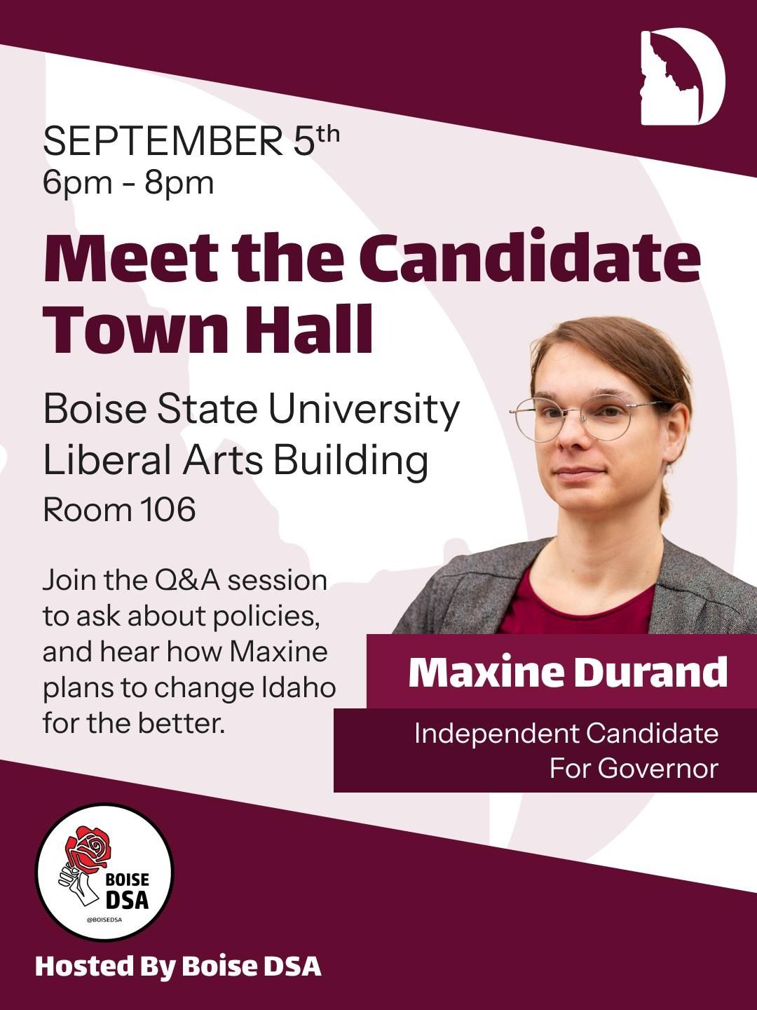 The event was hosted by Boise DSA in solidarity with the Durand for Idaho campaign.