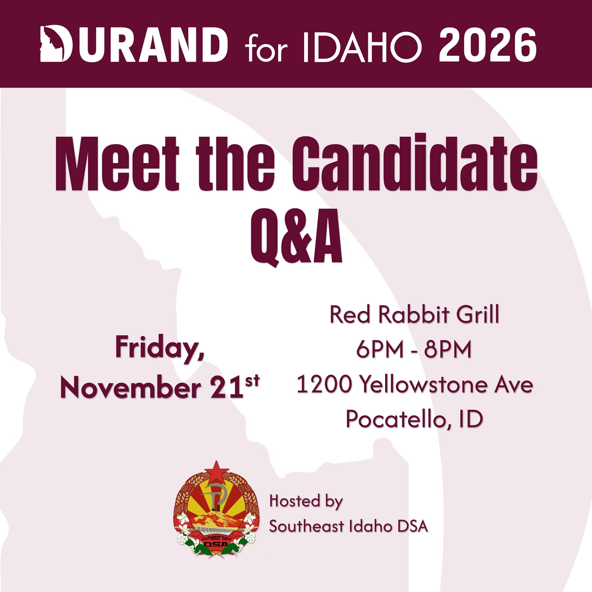 Hosted by Southeast Idaho DSA in solidarity for the Durand for Idaho Campaign.