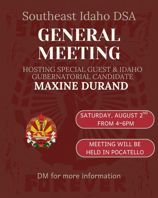 Southeast Idaho DSA General Meeting guest speech and Q&A – Saturday August 2nd, 2025
